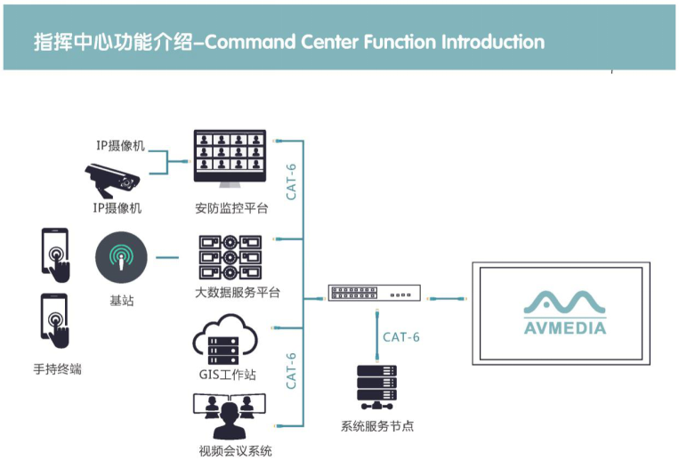 AVMEDIA云交互式管理平台应用核心是建立在一个集预案、视频、图片、语音、地理位置等信息为一体,以信息网络为基础,音频信号、视频信号、控制信号和通讯及其他相关技术的融合摄取、多协议融合传输、高清还原、交互管理基础上,以网络云平台为核心构建的兼容多种应用空间的综合业务音视频交互系统;各系统互通互联构建城市信息化的基础设施。通过集成的视频监控系统、GIS信息系统、应急联动系统、网络通讯系统将公安、消防、交通、卫生等应急指挥与调度集成在一个平台上。通过共享指挥平台和信息平台,实现日常会议、远程视频会议、执行现场指挥、内网大数据分析、接警、快速响应、联合相关部门信息决策。