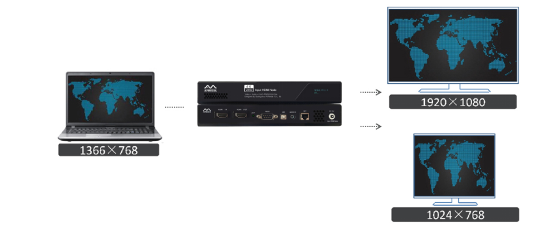 任何一路信号都可以进行上下变换,可以满足不同型号和组别显示器设备的不同分辨率的要求。