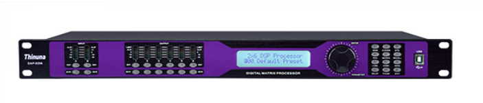 户外扩声系统配置多种音频处理器,6kHz采样率、32-bit DSP处理器、24-bit AD/DA转换,输入处理部分包含增益、静音、LINK、高切、低切、9个参量均衡、3个动态EQ、相位、延时等9个处理单元;输出处理部分包含分频、10个参量均衡、增益、静音、压缩/限幅器、相位、延时、LINK等8个处理单元。